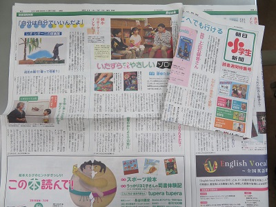 「朝日小学生新聞 読書週間特集」が当たったので、3年生以上に1部ずつ配付しました。