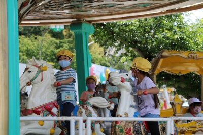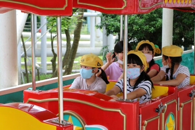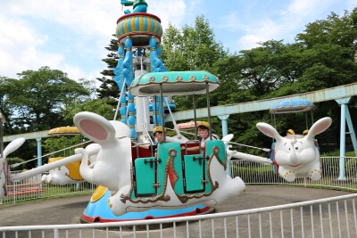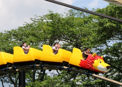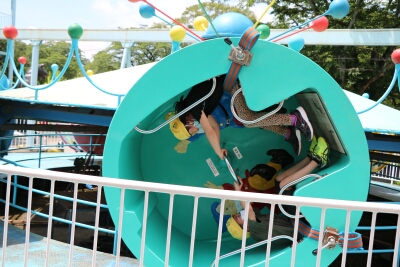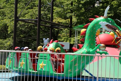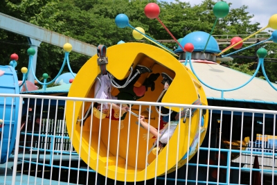 初めに、グループ毎に遊園地で乗り物に乗りました。