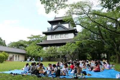 お弁当は、お城の前で食べました。みんなおいしそうに食べていました。