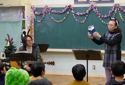 ギターは篠﨑さん、ハンドベルはかがやき教員が演奏しました。