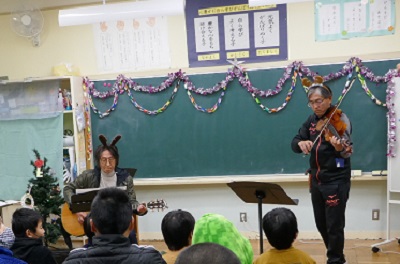 先生方が演奏する姿にびっくりしたり、喜んだりする子供たちの様子を見て心が温かくなるひとときでした。