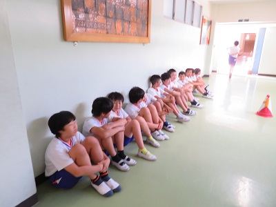 自分のクラスの順番が来るまで廊下で静かに待ちます。