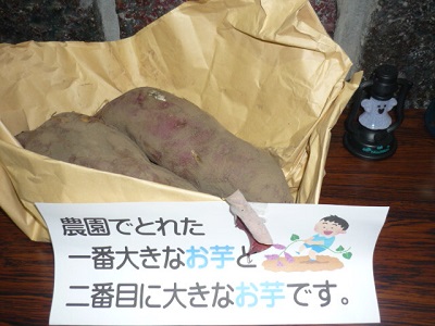 今年の農園でとれた一番大きな芋と二番目の芋です。
