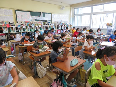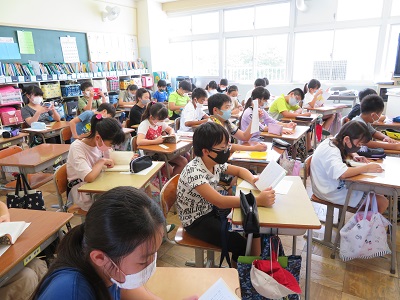 読書の時間になると、どのクラスも着席して、静かに読書をしています。