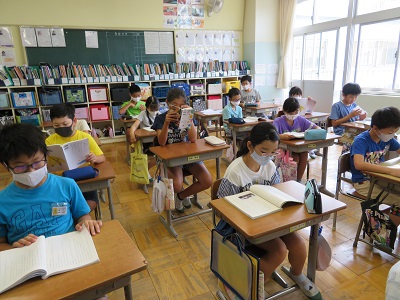 今年は、1週間おきにしか本が借りられないので、手元に本がないときには、国語や道徳の教科書を読んでいる児童もいます。