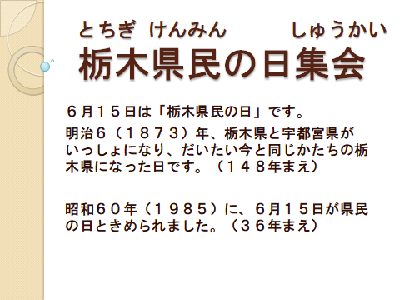 今年は、集会ができないので、放送で栃木県の歴史を話しました。