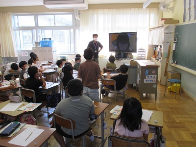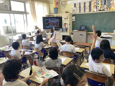 社会科の「店ではたらく人」の学習で、オンラインでスーパーマーケット 「カスミ」とつなぎ、「食育とスパーマーケットの学習」を行いました。