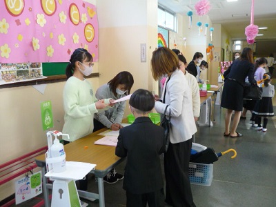 感染症予防のため、保護者の方は、1名のみ教室まで荷物を運んでもらい、もう1人の方は、体育館へ直行していただきました。