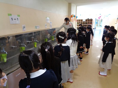 教室での過ごし方や、水道の使い方、靴箱の使い方等を確認しました。