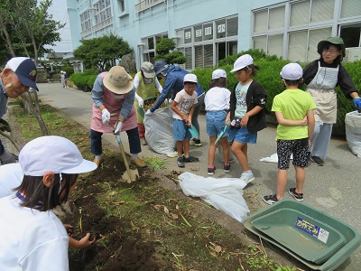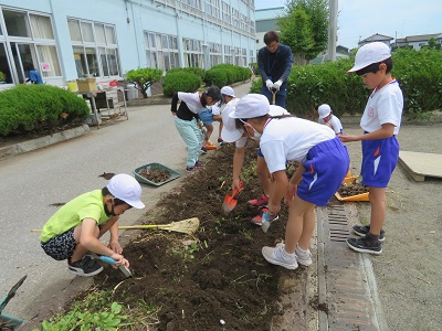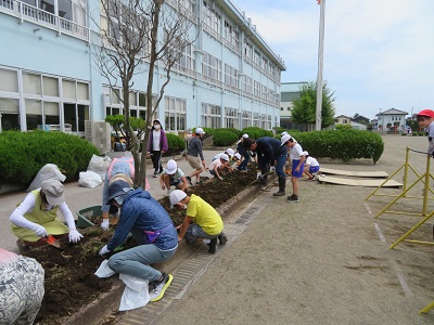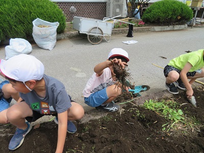 花壇作りのために、環境ボランティアの方に御協力いただき、スイセンの球根掘りをしました。