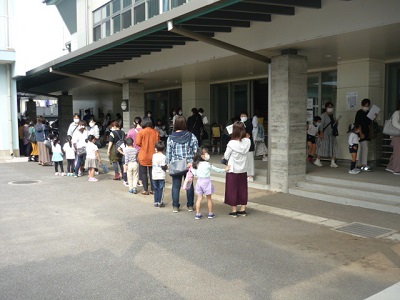 ソーシャルディスタンスを保ちながら、職員とボランティアで工夫し協力したお陰で、例年より早く就学時健康診断を終了することができました。