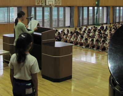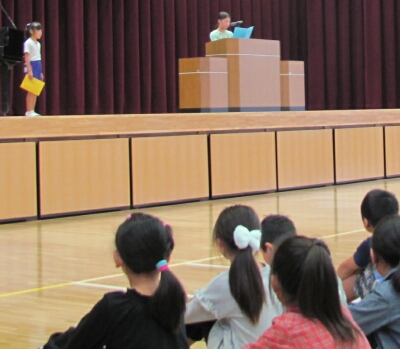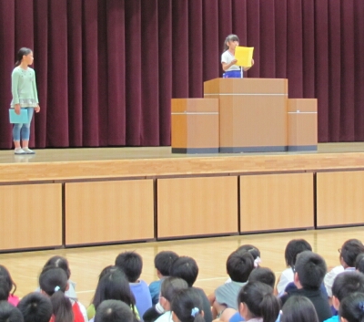 2年生と4年生の代表児童が、1学期の反省と2学期のめあてについての作文を発表しました。