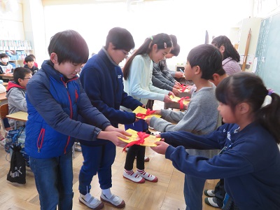 全校生で6年生を送り出す準備をしています。