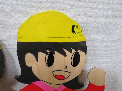 「とびだしぼうや」の帽子は、上小の安全帽になっています。