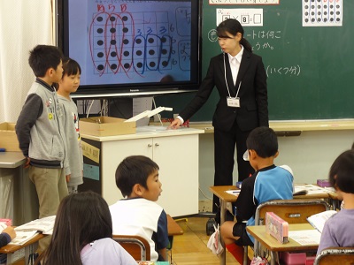 情報機器を使い、児童に見やすく教材を提示したり、一人一人丁寧に指導したりていました。