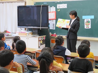 ワークシートを工夫したり、子供たちのどんな答えにも、常に笑顔で指導したりていました。