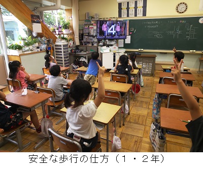 夏休み前にDVDを見て正しい横断の仕方を学習しました。