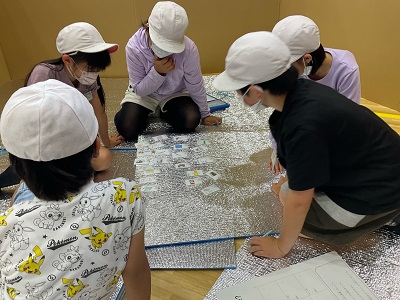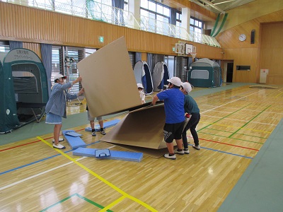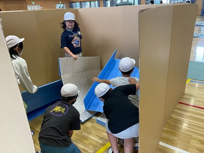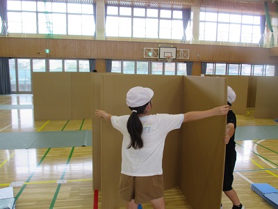 つぎに、班ごとで協力して避難所を設置します。