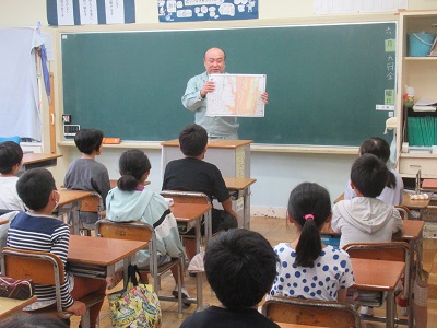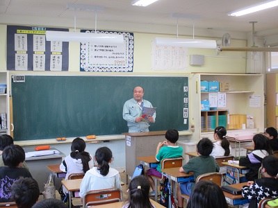 初めに、上三川町のハザードマップについて教室で説明を受けました。