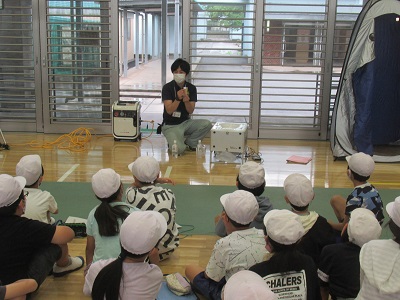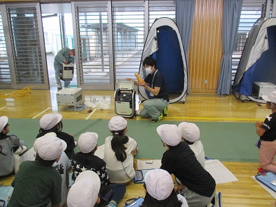 避難所で使用される仮設トイレや発電機についても説明を受けました。