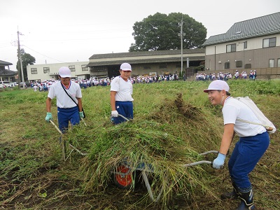今年は、夏休みの奉仕作業が中止になってしまったため、草がかなり伸びてしまったので、通路の入り口が分かるように、事前に教員で草むしりをしました。