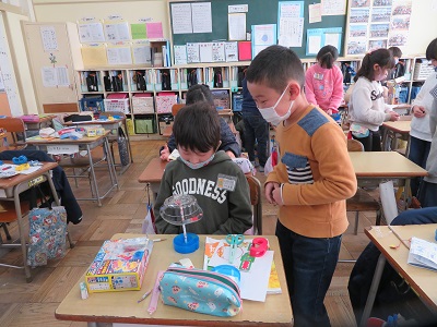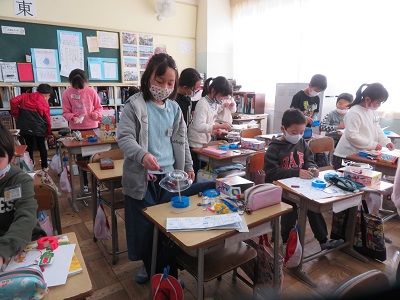 その単元のまとめとして、磁石の特性を生かしたおもちゃ作りをしました。