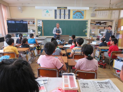 町の出前授業で、3年生がふくべ細工の体験をしました。