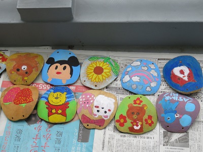 子どもたちは、表面に絵の具がのりやすいようにやすりを掛けたり、絵の下描きをしたりと、準備してきました。