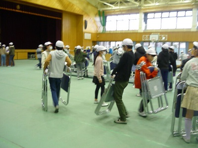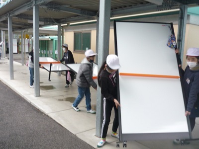 登校後すぐに、式場の片付けが始まりました。