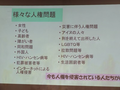 一言に人権といっても、写真のようにたくさんの種類があることを再確認しました。