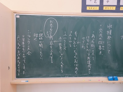 収穫祭の4年生が考えた班ごとの交流は、今年初めて行いました。児童の振り返りや自分達の班の様子から、改善点を見付け、次年度に行かせるよう、話し合いました。来年は、もっと楽しい収穫祭になるよう、話し合いを重ねたいと思います。