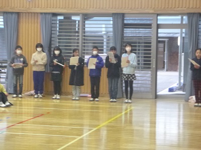 5年生が「6年生を送る会」の練習を一生懸命行っています。