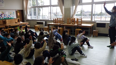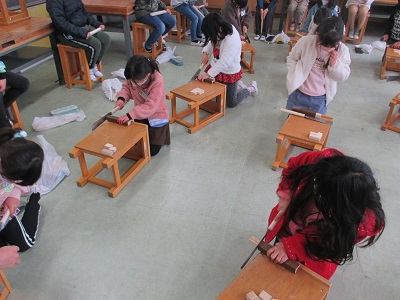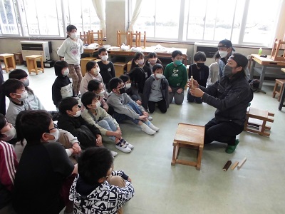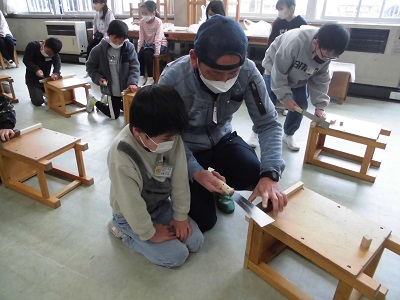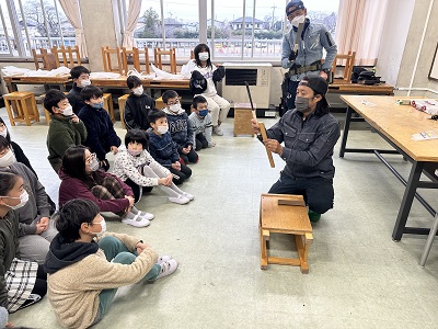 図画工作の時間に、大工さんからのこぎりの使い方を教えてもらいました。