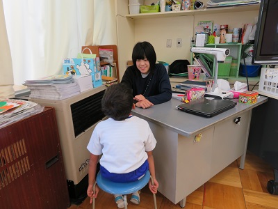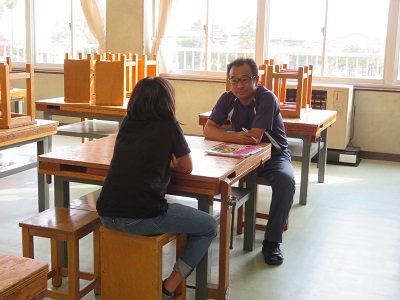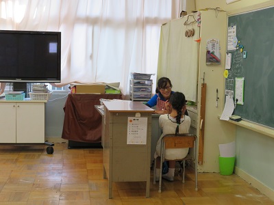 交友関係や登下校のこと、家族のこと、勉強のこと・・・話題はつきません。普段なかなか言い出せないことも、こんなに親身になってくれる担任には、すんなり話せてしまいます。教室にいられない子供たちのために、体育館では、毎日、映像を流しています。ある日は、アニメ映画、ある日は運動会のビデオ・・・。