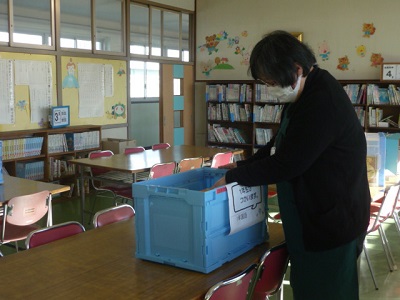 先生は、図書室の仕事だけでなく、図書ボランティアの方々に本の修理を教えてくださっています。