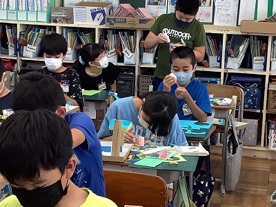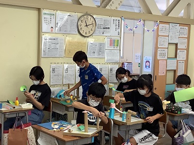 段ボール紙だけでなく、ストローや割り箸なども使って、工夫しています。