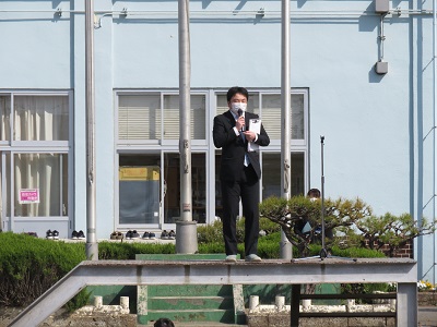 学級の前に担任が立って「よろしくお願いします。」の挨拶をしました。