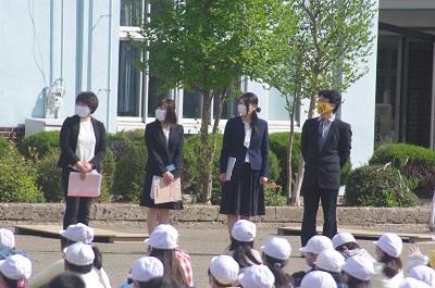 児童指導の先生から、①笑顔で挨拶をしましょう ②気持ちの良い生活をするために、仲良く助け合いましょう という話がありました。