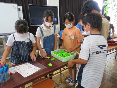 参加してくれた人たちに、かえるをプレゼントするための準備をしています。