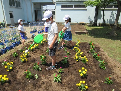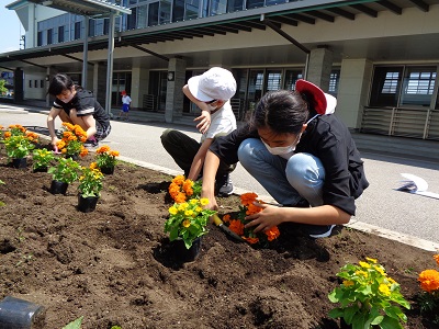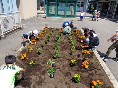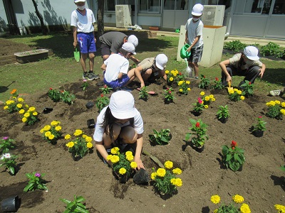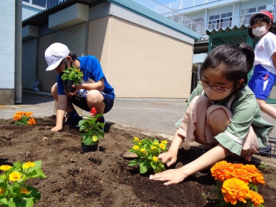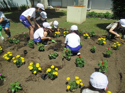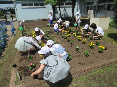 上小には、学年ごとの花壇があり、春と秋に植え替えをします。