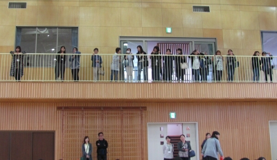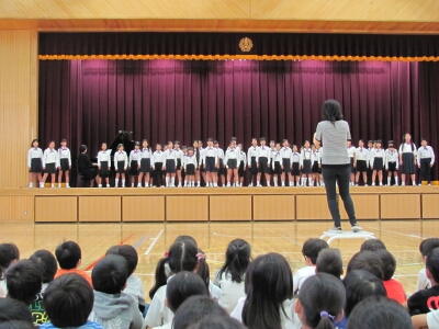~君がくれたもの~』と『この地球のどこかで』を披露しました。とてもすばらしい歌声で、全校生が真剣に聴き入っていました。合唱部の保護者の皆様も、応援に駆け付けてくださいました。