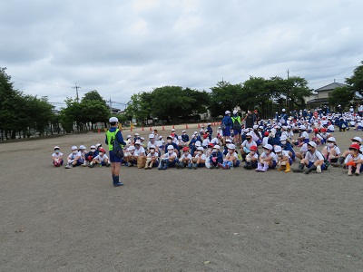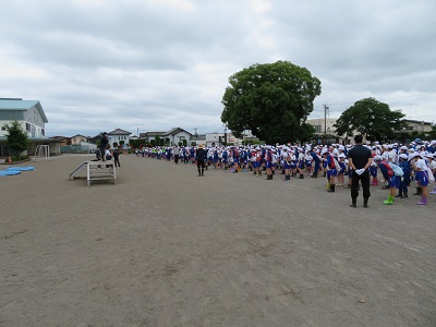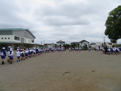 校庭になかよし班ごとに整列しました。