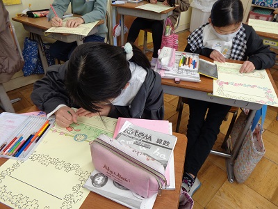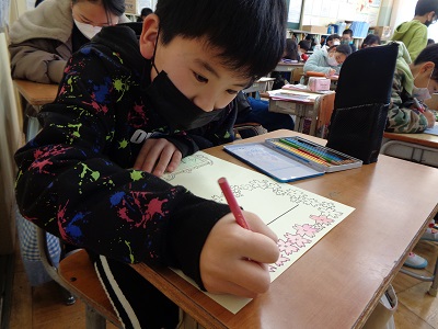 なかよし班の6年生には、一人一人手紙を書きました。一緒に活動した思い出や今までの感謝の気持ちを手紙で伝えました。