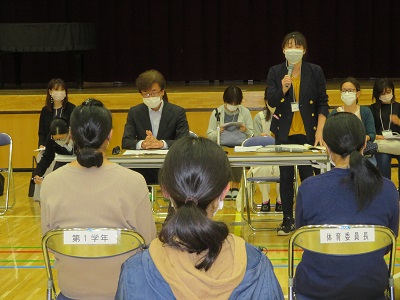 執行部の皆さん、学年委員長さん、専門委員会の委員長さん、地区委員さんの自己紹介