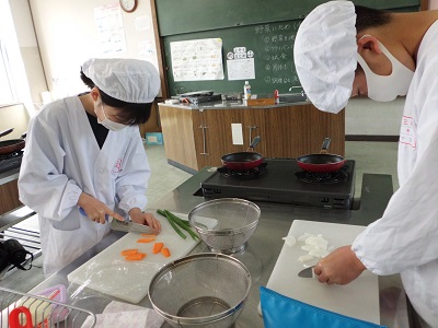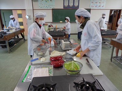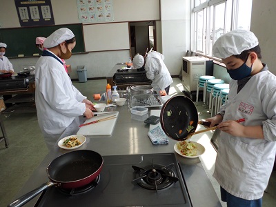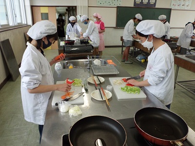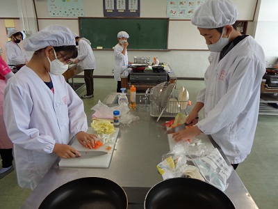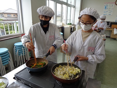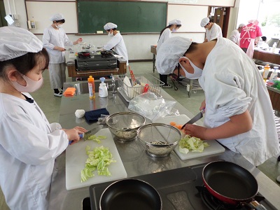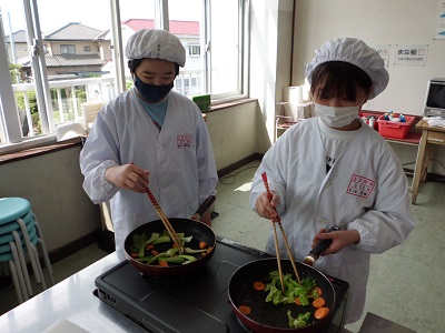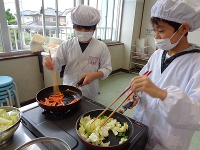 終わった後の感想では、野菜の切り方やいため方、味付けなどに改善点があるようでしたが、家族にも作ってあげたいという意見も多く、調理に対する関心が高まったようです。ぜひ御家庭でもチャレンジしてみてください。