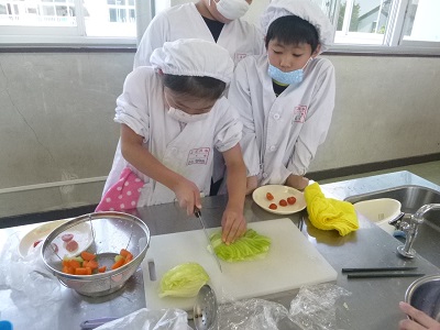 5年生 調理実習(サラダ)