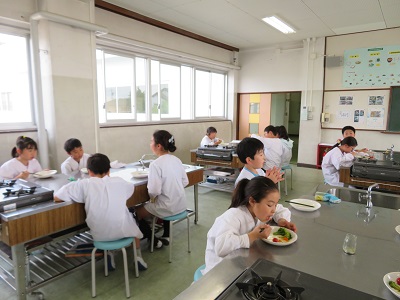 自分達で作ったサラダはおいしかったようで、普段、野菜がなかなか進まない子も、「おいしい!」と、完食していました。