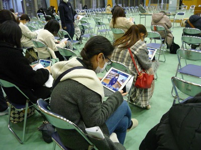 タブレットで、10年後の自分の姿を想像して書いた作文発表を見てもらいました。