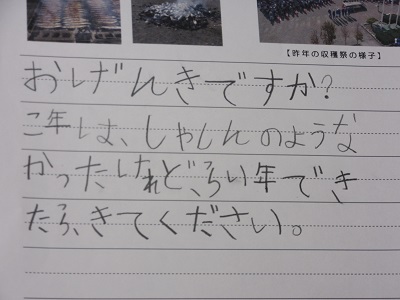 この後、子供たちは、今年招待できなかったおじいちゃん、おばあちゃん、見守り隊の皆さんに、心を込めてお手紙を書きました。