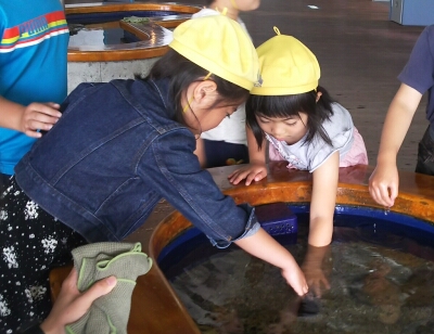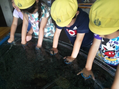 水族館の見学では、生き物と触れ合えるコーナーが大人気でした。